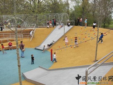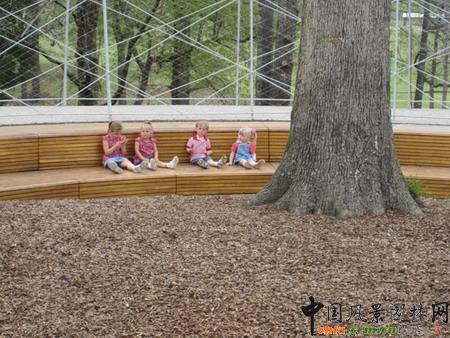 游樂園主要的特色是栽植了當地樹木和葡萄藤的漫步藤架。它連接了6個室外游戲空間或者說是“巢”,同時也是這些“巢”的支架結構。從滑索和秋千到懸于樹上的網,這些高坡和凹地提供了一系列豐富的游戲經歷,極大的增加了孩子們的空間和感官體驗,整合了各個年齡段的孩子的需求特點和興趣點。在優美的自然環境中,藤架和“巢”的組合提供了極富樂趣的捉迷藏場所。