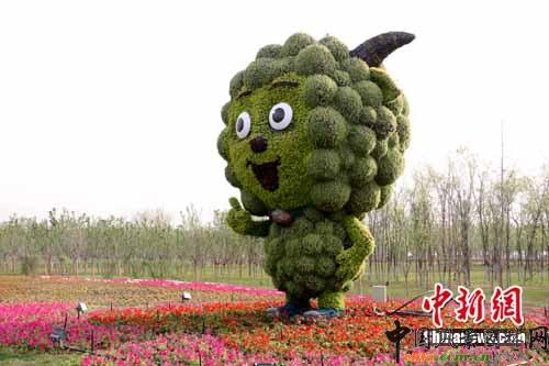 世園會園區內的綠雕“喜羊羊”。金鑫 攝