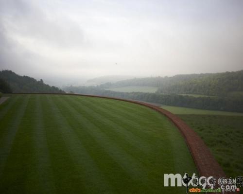 這里最讓人驚嘆的地方莫過于建筑不遠處的一個超大草坪,草坪整潔如一,沒有任何花朵和植物。這里可以清楚地欣賞著山谷美景。主人還可以在這里舉辦大型聚會。