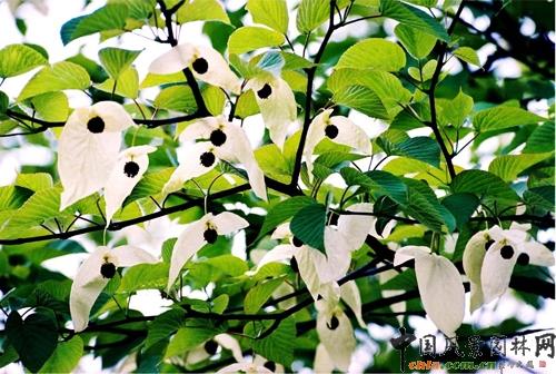 珙桐有“植物活化石”之稱,是國家八種一級重點保護植物中的珍品,為我國獨有的珍稀名貴觀賞植物。珙桐的花形似鴿子展翅,白色的大苞片似鴿子的翅膀,暗紅色的頭狀花序如鴿子的頭部,綠黃芭的柱頭像鴿子的嘴,盛花時猶如滿樹群鴿棲息,被世界上譽稱為“中國鴿子樹”。由于它稀有而珍貴,人們又送給它一個美名——“綠色熊貓”。