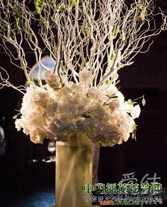色彩上選用高雅的白色,在花材的選擇上運(yùn)用了造型感極強(qiáng)的龍柳,點(diǎn)綴的絲絲綠葉生動(dòng)、清新,整體的白色調(diào)讓婚禮氣氛更加浪漫純潔。