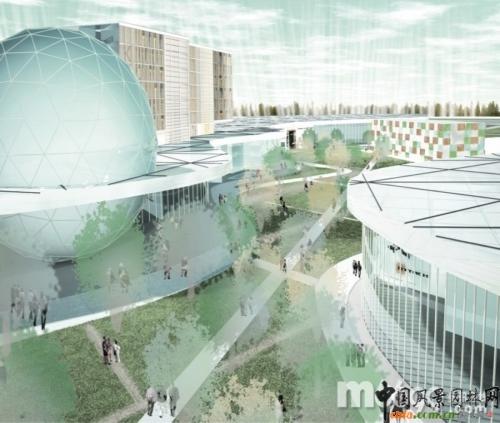 和這一地區相同高度的地方有人行道,這樣行人就可以通過此地到達任何地方,同時也是建筑物和大自然之間的一種過渡形式。大型建筑賦予了整個公園一個特點,那就是引導游客,讓游客有了歸屬感。在這座大型建筑的內部,都是以矩陣為基礎,展開布局和分布,里面有賓館、網球場、購物中心、曲棍球場。在這座建筑的屋頂,也有玻璃孔和綠色的中庭,這樣就可以使陽光照射進來。