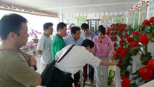 河局長一行在國際競賽項目負責人歐陽小健和植物園生物多樣性室主任黎斌等的陪同下,游覽了西安植物園的花卉植物展覽區、水生植物展覽區和藥用植物展覽區等。在熱帶亞熱帶植物展覽溫室里,河局長一行認真仔細地和溫室的工作人員交流了金日成花金正日花的栽培與管護方法,當看到部分花卉出現焦邊快凋謝時,河局長即刻安排手下工作人員負責給植物園調換新鮮的花卉,以確保向西安市民展出的金日成花和金正日花都是最漂亮的。因為他們在為世園會準備的隔離溫室里還有部分金日成花和金正日花。