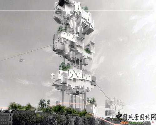 巴黎一向都反對垂直立體化的建筑,他們喜歡線條和浮夸的雕花,這個設計能給巴黎帶來與眾不同視覺新享受,像一個立體化的雕塑,堆疊向上的方式有點像空中樓閣,它和普通的樓宇之間還有直通的滑道通入。
