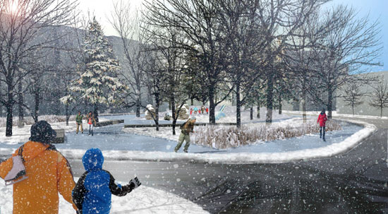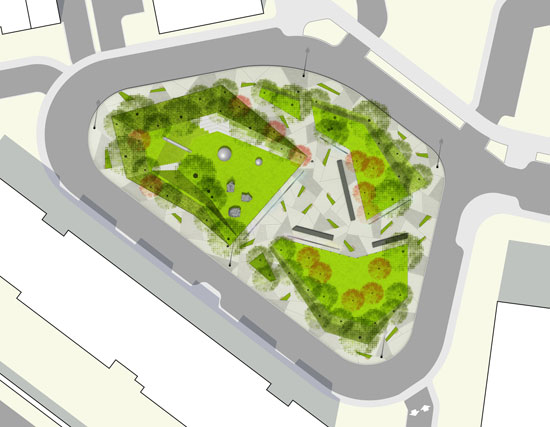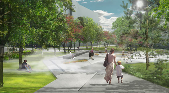 這個工程成為周邊新的建筑園林美景。公園成為規模宏大的廣場入口,與更大型建筑相稱。一系列景觀和地勢起到分隔和加強作用,將多種公共空間連接起來。該項設計為這個區域創造一種景觀認同感,整體多樣性增加,可察覺的限制性減少。