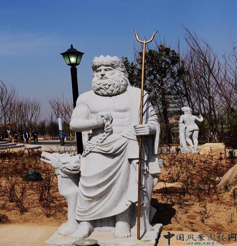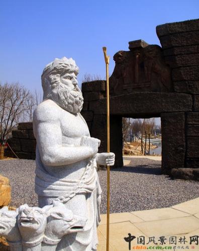 索羅斯廣場(chǎng)以希臘德爾斐遺址廣場(chǎng)為原型,豎立著數(shù)根高大石柱,展示著對(duì)西方建筑影響深遠(yuǎn)的希臘柱式以及完美比例的運(yùn)用。而圣林里將擺放希臘神話傳說(shuō)中的12尊主神雕塑,為游客詳細(xì)展示希臘的神話人物,使古希臘文化氛圍突現(xiàn)。古希臘園最引人矚目的是獅子門。兩根穩(wěn)健的石柱承載著笨重而略成弓形的石制橫梁,橫梁上面是巨石砌成的拱門,巨石的正面是一組浮雕:兩只對(duì)稱的獅子一左一右以前足踏立在祭壇上,中間立著一根象征著宮殿的柱子。設(shè)計(jì)人員介紹說(shuō)"獅子門是邁錫尼衛(wèi)城的入口。門上的疊澀券對(duì)以后的建筑有著深遠(yuǎn)的影響。"獅子的造型宏偉生動(dòng),配上這巨型拱門,使人有了置身宮廷的感覺(jué)。希臘被譽(yù)為藍(lán)寶石之國(guó),這不僅因?yàn)樗纳衩睾凸适滦院芊线@種寶石的色澤,更是因?yàn)樗麩o(wú)與倫比的美麗。也許,一次希臘園的觀賞,一個(gè)美麗的藍(lán)寶石之國(guó)夢(mèng)想也會(huì)不太遙遠(yuǎn)。