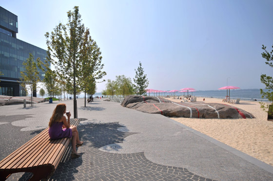 加拿大糖果海灘的設計利用了地區的工業遺址和周圍的Redpath糖果工廠。公園由三個部分組成:城市海濱、廣場和斜穿過公園的林蔭散步大道。糖果作為一個概念在園中使用,形成一種帶有糖果元素的獨特語言。比如,公園兩處裸露地表上繪制了紅白糖果條紋的巖基,柔軟的像糖果的粉色海灘遮陽傘,和有甘蔗型的不銹鋼通風管,通向散步道下隱蔽的噴泉機械拱頂。