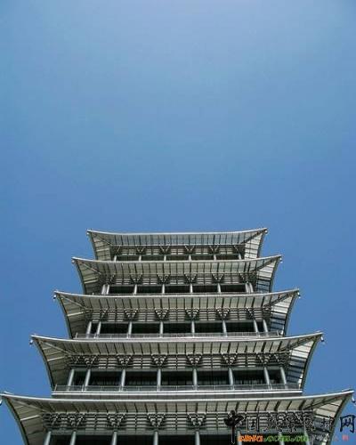 檐下與柱頭之間用金屬構件組合,是傳統建筑檐下斗拱系統的抽象和概括。玻璃幕墻退在外槽柱內側,通過玻璃肋與柱、梁固定。一系列處理使唐風唐韻的建筑充滿了現代感。長安塔大量采用鋼結構和相關構件,具有自重輕、強度高、抗震性能好、便于工業化生產等優勢,而且節能省地、可循環利用,建造和拆除時對環境污染較少,被譽為21世紀的"綠色建筑"。