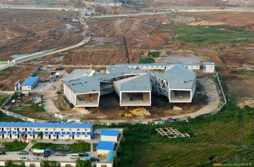 總平面布局以西安世界園藝博覽會概念性規劃和修建性詳細規劃為依據,密切結合周邊道路條件,并充分考慮其在全園內的位置及其與規劃的長安塔和自然館之間的關系。建筑自然分割成三個相對獨立、并向水面延展的展覽展示區域,橫向通道將其貫穿連接。游客可以經由一系列的室內展示坡道上達屋頂觀景平臺。結構主體采用鋼筋混凝土結合鋼結構的形式,屋頂使用了混凝土褶皺板結構,以滿足建筑對大跨度空間的需求,優美的結構形式體現了功能與形式相結合的建筑藝術最高境界。