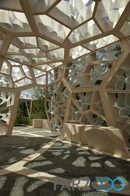 MEX事務所的創始人AlanDempsey解釋說,植物的細胞結構和生長的過程稱為設計的靈感來源。設計者利用計算機算式來模擬自然生長狀態,能讓參觀者體驗生物結構的圖案。展臺采用云杉木搭建,頂部是一個玻璃屋頂。