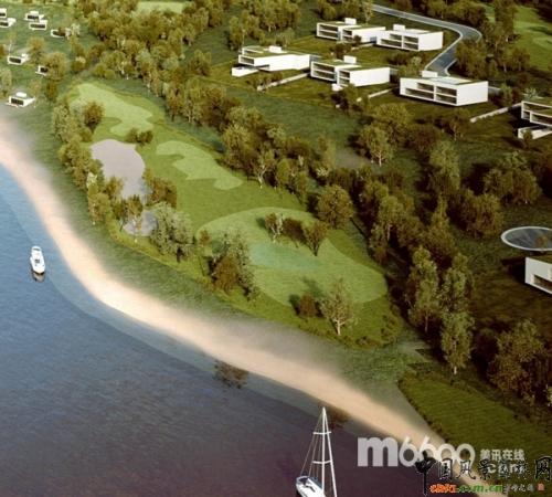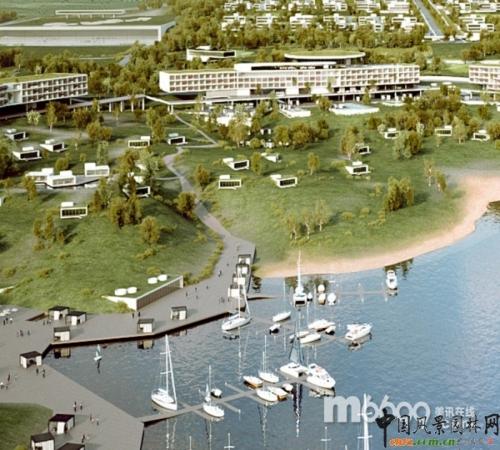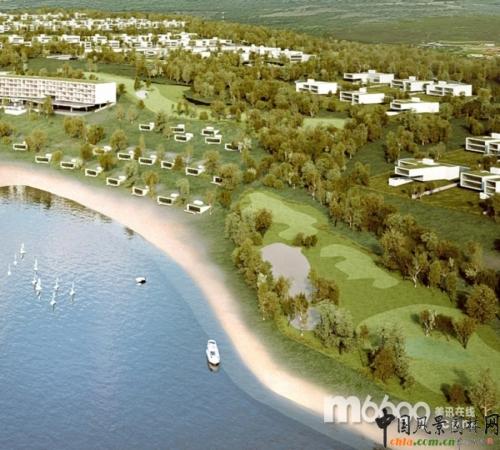 這項設(shè)計主要集中在景觀的設(shè)計,同時利用了地形的優(yōu)勢,分成了幾個層次建造。處在第一層的是酒店、碼頭和部分靠近湖水的公寓。設(shè)計方案還有觀察平臺和外部休息區(qū)域,在這里可以清晰的觀察周圍的景觀,也加強了游客在這里的體驗。較高的一層要建造其他的設(shè)施,共管公寓穿過這個地區(qū),和高爾夫球場平行,這就是周圍的景色更加迷人。