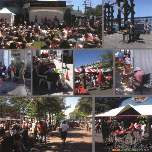 格蘭威爾島的實踐成功在以保護為主體的規劃布局、以大眾藝術為導向的復興模式、以及以文化傳承為切入點的復興策略上。除此之外還表現在對老建筑的再利用、景觀設計的系統性和交通方式的多樣性等。例如,建筑的雨篷、沿街裝飾物等被刷成不同的顏色,反映建筑物的不同功能:綠色代表娛樂、紅色代表商業零售、黃色代表生產、藍色代表水上活動等,從格蘭威爾大橋上俯瞰整個格蘭威爾島時,景觀效果非常壯觀;再如景觀設計中充分利用了場地的濱水特征,從臨水住宅到戲水公園、水上平臺、游艇碼頭以及各種水上體育活動應有盡有。另外包括公共汽車、自行車、小輪渡以及步行在內的多樣化的交通也是格蘭威爾島改造的一大特點。這個多功能交通體系的提出,本意是為了鼓勵大家放棄私人汽車的出行方式.從而在一定程度上緩解了島上的交通擁擠。想法挺好,但實際操作效果一般,島上的汽車依然非常擁擠,節假日車流量大時甚至需要義工來指揮交通。