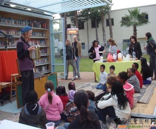 以色列特拉維夫的Levinski花園圖書館,一個社會—藝術形式的社區工程,由YoavMeiri事務所與Arteam合作設計。該工程把看書視為人類的基本權利之一,也是逃避繁重生活的一種放松方式。