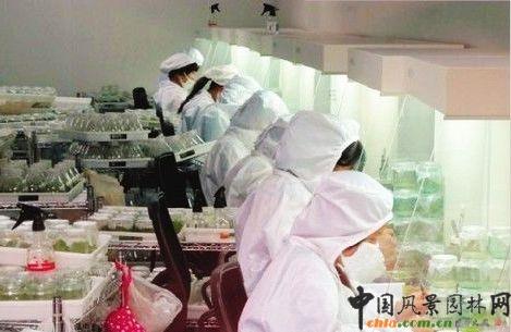 步驟四:有了一定量的增殖苗后,就可以大規模生產種苗了。比如滿天星有一萬個新芽,切成兩半后,上面一半可培育成1萬株種苗,下面一半還可生出幾萬個新芽,呈幾何式增長。