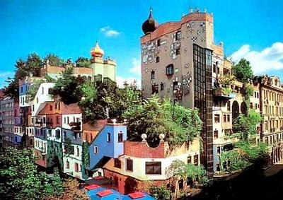 百水先生為維也納市設(shè)計(jì)了一座“自然與人共存的建筑”。百水先生任憑自己的藝術(shù)想象縱橫馳騁,以“對(duì)不規(guī)則的容忍”為原則設(shè)計(jì)了這座建筑。樓房里幾乎沒有一塊平地、一間房屋呈規(guī)則的四方形。色彩斑斕的立面,窗戶內(nèi)探向室外的樹,波浪形的圍墻,所有這一切代表與傳統(tǒng)概念上的建筑的決裂。人們有的為這種大膽的藝術(shù)贊嘆,有的則對(duì)這種夸張的藝術(shù)不屑一顧。早在繪制建筑草圖和設(shè)計(jì)稿的時(shí)候,被稱為特立獨(dú)行和另類的設(shè)計(jì)師百水先生就已經(jīng)把建筑完成后應(yīng)具備的所有元素融入進(jìn)去了,其中包括色彩營造的活潑氣氛,圓形,螺旋和曲線等建筑語言組合所蘊(yùn)含的想象力和張力。和建筑師本人一樣,百水的建筑符號(hào)中也洋溢著一種激情,說服力和享受生命的樂趣。