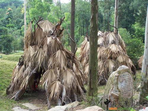 澳洲大陸四面環海,在歐洲人到達之前澳洲被封閉在一個與世隔絕的環境中,數萬年來原住居民依然保持中石器時期的原始部落生活狀態。澳洲原住居民主要生活在地處赤道附近的沿海地帶,這里氣候溫暖、植被豐富、動物繁多,以狩獵——采集為生的原住居民不懂農耕和放牧,不會制陶也沒有金屬制品;由于氣候溫暖毋須穿衣和住房便可生存,原住居民不懂紡織和建筑,終年流浪遷徙,居無定所,常在所到之處搭棚或茅屋或壘石屋暫住。澳洲園的原住居民小屋很簡陋,反映出他們流動的生活方式,小屋用樹枝搭成,鋪上樹皮,樹葉和茅草等,用材根據環境取舍,隨意、自然。天冷時,原住居民用草席和動物毛皮作毯子來保暖。