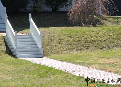 上山路徑可以拆分成不同的行道來做設計。比如,中間可以穿插美觀又實用的樓梯。樓梯方便上山攀登,也打破了單調的路途節奏,否則上山將是一段漫長的跋涉。
