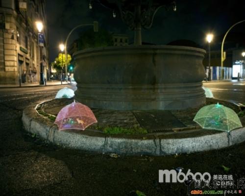 在現代城市之中,有很多小植物都是從巖石縫中生長出來,Luzinterruptus正是想要保護這些生命脆弱的小植物。在市中心沒有可用綠色空間的地方,它們的努力就是它們生長的動力。為了保護它們,設計團隊為每個植物撐了把傘,形成溫室一樣的環境,用來保護它們不受污染。在他們的保護下,小的動物和植物一起,在溫室里面成長。溫室里面燈光明亮。