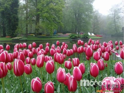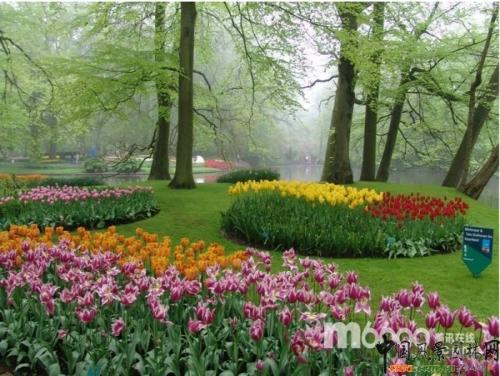 春天的荷蘭,乍暖還寒。千姿百態的郁金香已迎春怒放。庫肯霍夫郁金香公園位于盛產球莖花田的中心城市麗茲,距荷蘭首都阿姆斯特丹40分鐘的車程。公園四周環繞著五彩繽紛的花田。
