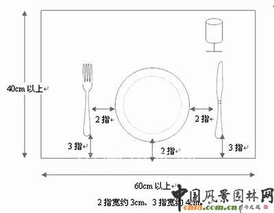 在常規(guī)的餐桌花設(shè)計(jì)中,每個(gè)人的用餐空間最少在60cm以上,這樣才不會(huì)碰撞旁邊的人。布置按照“臺(tái)布→器皿→餐具(刀、叉、勺)→酒具→餐巾→飾品”的順序。餐巾一般放在器皿的上面、叉子的左方。
