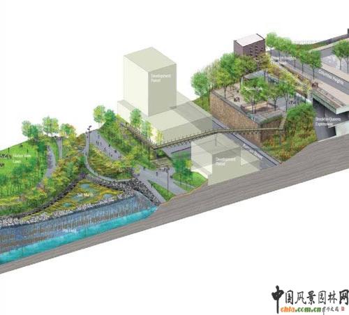 中國風景園林網訊 說起"橋",大多數人都很容易聯想起"汽車"。但Squibb公園步行橋連接布魯克林高架至布魯克林大橋公園將是一條嚴格意義上的步行橋。HNTB橋梁設計技術總監Ted Zoli說"現在的城市環境能夠勾起行人難忘的回味的步行體驗空間越來越少了,行人的通達性是即將面臨的最大挑戰。"