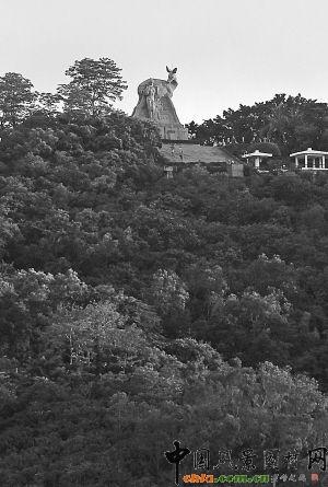 《鹿回頭》雕塑矗立在鹿回頭公園五嶺的最高峰,高12米、長9米,寬4.9米,獵手和鹿女依偎在鹿的兩側,凝結成三亞別稱“鹿城”。