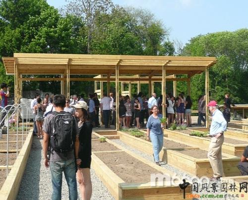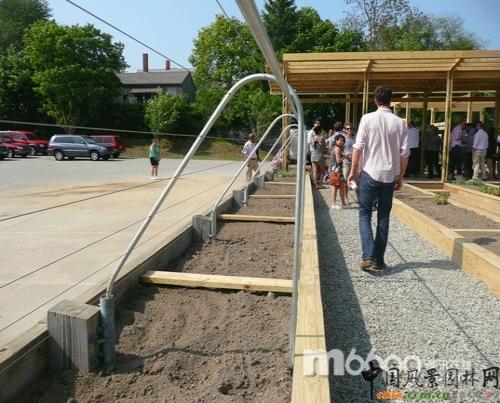 羅德島設(shè)計(jì)學(xué)院的學(xué)生們最近展示了一項(xiàng)他們在羅德島波塔基特設(shè)計(jì)的一項(xiàng)美麗的社區(qū)花園設(shè)計(jì)。這個(gè)花園的周圍有基督教青年會、老年住宅區(qū)和教堂。該花園由72名建筑專業(yè)一年級的學(xué)生設(shè)計(jì)建造,是一個(gè)公共活動空間和花園。這項(xiàng)花園景觀配備有雨水集水系統(tǒng),培育植物使用的溫床是由回收利用的松木建造而來,該花園就是一個(gè)微型生態(tài)系統(tǒng)。
