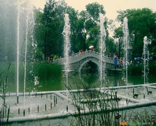 蓮魚湖中間設(shè)置了燈光程控噴泉,中間主噴依據(jù)鳳凰的形狀,把800余盞LED三色燈和噴頭組裝在一起。水柱的高度各有不同,其燈光的顏色也在程序的控制下不斷變換,燈光映照在湖面上下呼應(yīng)、五彩斑斕。背對(duì)鳳凰山面向蓮魚湖呈現(xiàn)在人們面前的是一只翩翩起舞的鳳凰。在主噴的兩側(cè),為兩只動(dòng)感鳳凰,翅膀上下擺動(dòng)的同時(shí)尾部也在左右擺動(dòng),似鳳凰戲水,在主噴靜態(tài)映襯下更顯得活靈活現(xiàn)。噴泉周邊種植荷花,在炎炎夏季,蓮魚湖被姹紫嫣紅的荷花裝扮得格外美麗。在蓮魚湖周邊鋪設(shè)了環(huán)湖木質(zhì)鋪裝,作為游人休閑的場地。湖東側(cè)百游廊為人們提供舒適的活動(dòng)場地,長廊延伸到遠(yuǎn)處的春景花園中,一個(gè)個(gè)座椅圍合的小空間可以開展多種規(guī)模的活動(dòng)。每天都有眾多的京劇、評(píng)劇票友和歌唱愛好者到這里表演、歌唱,引來很多市民駐足欣賞。