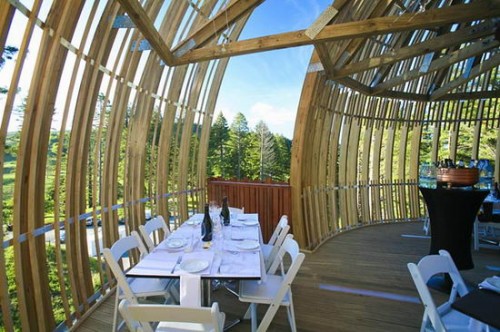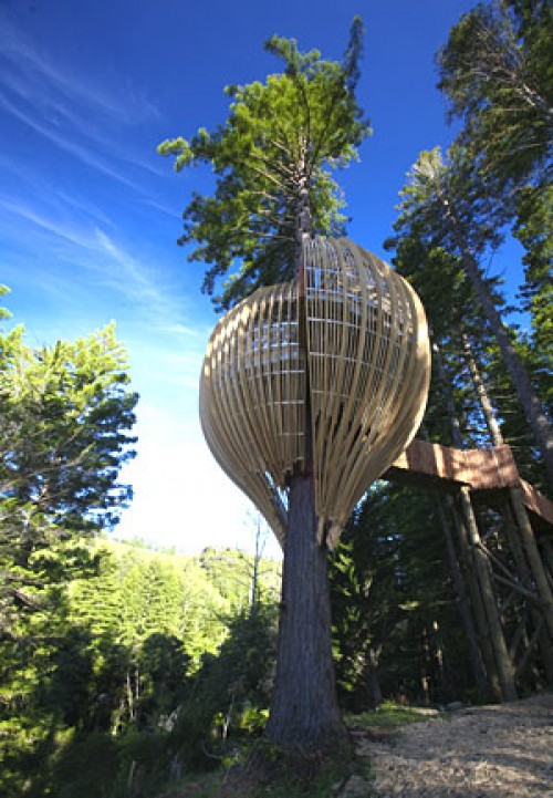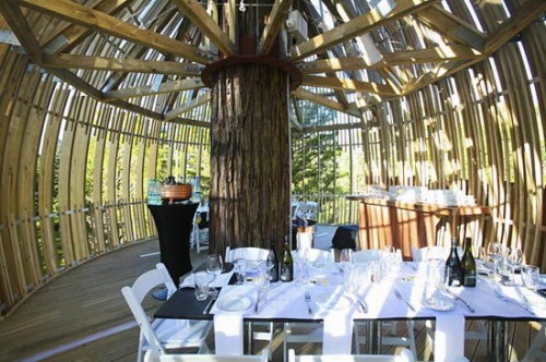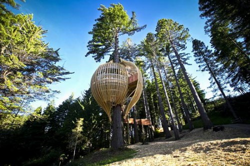 在新西蘭的奧克蘭以北,沃克沃思附近有一家十分奇特的餐廳,它建在距離地面10迷的大樹之上,形似橢圓的果莢。它是建筑師彼得艾興的得意之作,設計靈感來自于大自然。在餐廳開業幾天內,就有500多人訂餐啦~~