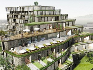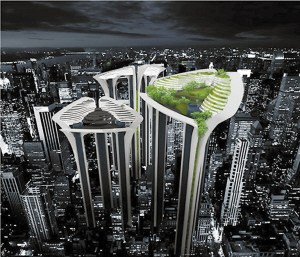 在現代化的發展步伐中,不斷占用土地修建建筑,城市需求不斷擴大,可用地處于告急狀態,怎樣把有限資源發揮到最大程度,是建筑設計師們一直追求的。阿卡迪亞樹概念的提出,在一定程度上解決了城市用地荒的現狀,阿卡迪亞樹的“三腿塔”:建立在很高大的大廈上面,每一個大廈都承擔著關鍵的重量,大廈里面的人可以在空閑時到上面休閑娛樂,這種空中花園的設計還增加了城市綠化面積,給人們提供了更多的休閑場所,放松工作的壓力。像丘陵的設計也增大使用面積,得到更多的使用面積。