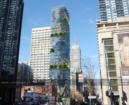 澳大利亞建筑公司CK建筑設計事務所為墨爾本的CBD地區設計了一座極具表現張力的,35層高的商住混合建筑。建筑中每六層就會設有一個景觀社區花園,園內樹木最高可達十米,花園面積幾乎相當于場地面積的兩倍。