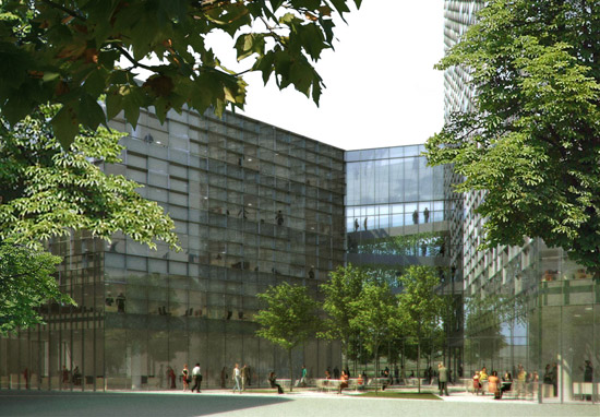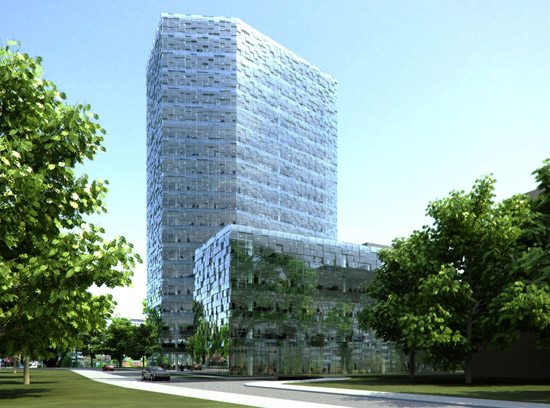 3LHD建筑事務(wù)所設(shè)計(jì)的miramare商業(yè)中心,位于克羅地亞·薩格勒布市Miramarska街與Bednjanska街的交叉口處,這里也是兩種城市觀念的碰撞點(diǎn):北半部分是薩格勒布市典型的貧民區(qū),被鐵路線封閉;而在南半部分則絕大部分是公共與社會(huì)建筑,充滿了現(xiàn)代化特征。該項(xiàng)目由兩個(gè)相互影響的建筑體塊組成,一個(gè)有20層,一個(gè)有5層,這樣就既滿足了規(guī)劃目標(biāo),又與鄰近建筑保持和諧統(tǒng)一;同時(shí),兩個(gè)建筑體塊間的中庭又將建筑體與周邊的步行區(qū)聯(lián)系起來。建筑體地下層預(yù)留做車庫,一層用于商店、酒吧以及餐廳。在建筑體中,有20,000平方米的辦公空間,在樓頂還有一處獨(dú)特的觀景臺(tái)。建筑立面簡(jiǎn)潔,但又很吸引人。進(jìn)進(jìn)出出的玻璃塊,給建筑體帶來強(qiáng)烈的可識(shí)別性。