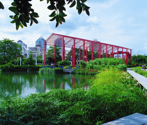 中山岐江公園的場地原是中山著名的粵中造船廠,作為中山社會主義工業(yè)化發(fā)展的象征,它始于上世紀(jì)五十年代初,終于九十年代后期,幾十年間,歷經(jīng)了新中國工業(yè)化進(jìn)程艱辛而富有意義的歷史滄桑。特定歷史背景下,幾代人艱苦的創(chuàng)業(yè)歷程在這里沉淀為真實而彌足珍貴的城市記憶。為此,我們保留了那些刻寫著真誠和壯美、但是早已被歲月侵蝕得面目全非的舊廠房和機(jī)器設(shè)備,并且用我們的崇敬和珍惜將他們重新幻化成富于生命的音符。