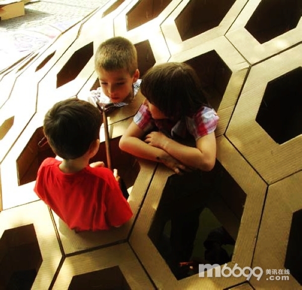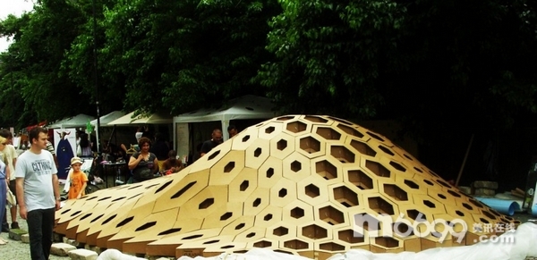 Hexigloo是一個十分特別參數(shù)設(shè)計亭子,它位于羅馬尼亞的布加勒斯特,是由Tudor Cosmatu、Irina Bogdan、Andrei Raducanu以及特邀導(dǎo)師 Andrei Gheorge、Alexander Kalachev、and Bence Pap的共同協(xié)作下完成的。55名學(xué)生在一周的時間內(nèi)學(xué)些了參數(shù)設(shè)計原則,軟件之后,開始著手于該亭子的后半期工程的設(shè)計和建造。在十個工程中,通過激光切割機和輪流換班組裝亭子部件,三個工程如期完工。