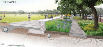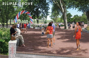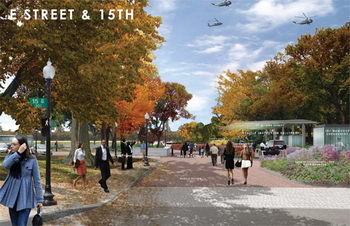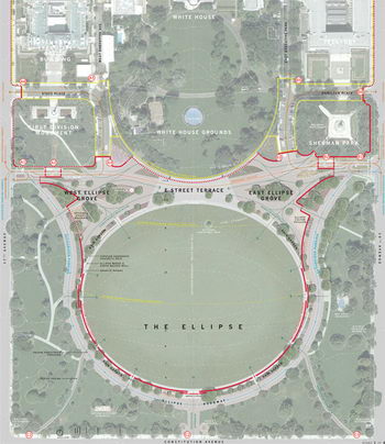 南總統公園是華盛頓居民和國內外游客的目的地。作為一個向總統情愿的平臺,這是一個展現開放社會安全性的完美場地。我們對E街和橢圓草坪整體全面的規劃,將有利于安全服務,便利設施也有利于公眾利用公共空間。近些年來,白宮的安全保衛措施與周圍的公共空間的保護脫節。總統公園是一系列未連接的室外空間區域。橢圓草坪被從白宮宅地分割出來。E街雖鄰近交通道路卻未能作被公眾使用開放使用。新的設計必須依據現有的資源,例如景觀和橢圓草坪的尺度,連續E街的公眾特性,將現在的需求與公園原來的規劃目的結合起來,以此重建一個有強大視覺沖擊里的自由文化景觀。