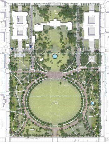SASAKI的設計概念整合安全設計和風景設計,從白宮到紀念碑,他們著力打造一塊新的大型市民聚集空間,成為視軸線上宏偉的城市地標。這個安全設計的整合方法包括E街行人、自行車以及景觀升級,橢圓草坪和周圍區域的改善。解析當今安全需求,總統公園與城市和歷史融合是個重要機遇。這些對公園的調整旨在: