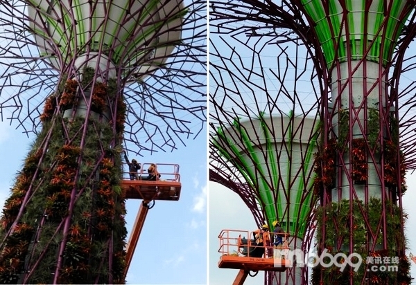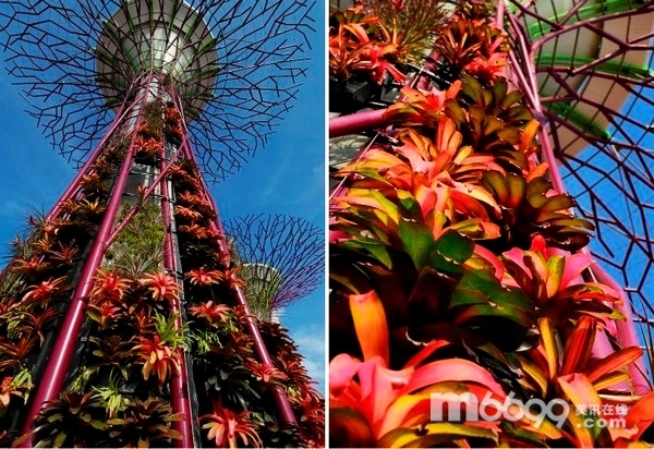 最近新加坡濱海灣公園出現了一些不可思議的巨型大樹設計。這個面積為101英畝的自然保護區不久將會引進全世界超過22.6萬種的植物和花卉。這個巨型大樹是由Grant Associates建筑事務所設計,18棵巨型大樹將會形成塔狀垂直花園,用于收集雨水,利用太陽能發電,同時也是保護區的通風管道。盡管這個花園距離竣工還需一段時間,但毫無疑問,巨型大樹將會成為一道最為亮麗的景觀。