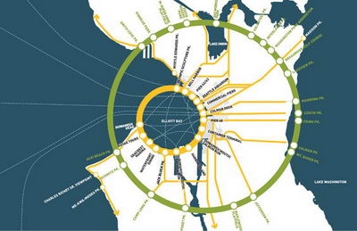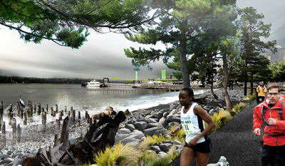 中國(guó)風(fēng)景園林網(wǎng)訊:2010年9月,James Corner Field Operations設(shè)計(jì)公司成功戰(zhàn)勝Wallace Roberts and Todd公司, Michael Van Valkenburgh and Associates公司和Gustafson Guthrie Nichol公司,最終贏得西雅圖公園旁的西雅圖水濱設(shè)計(jì)項(xiàng)目。近期西雅圖水濱的第一設(shè)計(jì)將揭曉,這是個(gè)前所未有的重建西雅圖和埃利奧特海灣聯(lián)系的契機(jī),收回海濱地區(qū),使其成為整個(gè)城市的公共空間。
