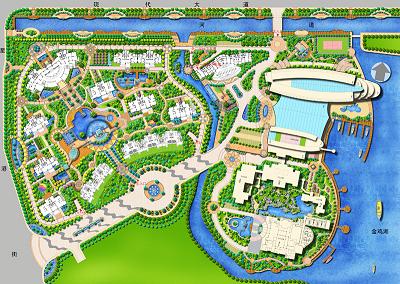 項目位于蘇州工業園內,東南面臨金雞湖,南接香樟公園,北接現代大道,四周環水,自然環境優越,是世界級高級精品社區,與一個五星級酒店(中茵皇冠國際酒店)相結合,利用基地內水系發達,以水為骨架,主題是“水域天堂”。把它孕育成“生態型、科技型、人文型”景觀于一體的高檔豪華住宅區。景觀設計手法上既充分彰顯以人為本的理念,又表現出適應時代的現代感,體現出豪宅的品質和尊貴感。同時采用借景與引景手法,使城市景觀文脈在社區內得以延續,營造出開窗觀湖、推門見林之效果,使整個社區融入金雞湖周邊的自然環境中,使“中茵?皇冠國際社區”在今天鋼筋水泥林立、蔽日遮天的狹窄的城市生活中,綻放出與眾不同得華彩,成為不可多得的理想居住地。