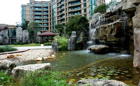 春天花園景觀工程,總面積約為3萬平方米,位于臨安市區。工程內容以植物造景為主,園林小品為輔,枯山水的運用是本工程的一個亮點之一,置石技藝精湛、別具特色。景觀設計融合了日式和中式兩種園林設計風格。中式方面采用了傳統的疊山理水,日式方面則吸取了旱溪這一元素;植物配置上以盆景式大樹和球類相結合,喬木中間層次選用桂花,整個植物配置顯得大氣而富有詩意。植物的配置具多樣性;假石與真石融合得恰到好處。作為一處高檔住宅區,春天花園格調高雅,處處是景。既有置身綠色森林之感,又能享受開闊空間和通透視野,同時還能感受到融融春意。這種獨特的森林韻味相信是每個都市人理想的居住環境。