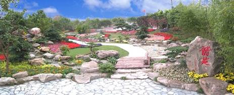 諧苑,占地面積1420㎡,呈自然式布局。諧苑設計秉承“雖由人作,宛自天開”的造園手法,強調了植物造景藝術,80多種植物素材,近20個植物新品種的運用,綜合現代景觀技術,營造出玲瓏素雅、自然樸實的江南景觀。全園以浙江山水為背景,以母親河錢塘江奔流入海為主線,一灣流水貫穿全國,“錢江源”、“晴空海蜃”兩大景觀交相輝映。園內綠樹盎然,花漫遍地,洋溢著浙江朝氣與活力,體現了浙江自然山水、人文歷史、經濟社會的和諧。漫步諧苑,自然與歷史交融,傳統與現代對話,所有的表征烘托出人與自然的和諧,經濟與生態的和諧,人類發展的和諧。