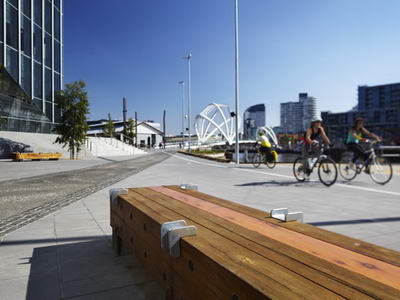 在墨爾本會展中心,一系列升高的平臺花盆中種植了低矮的本地樹木和沿海抗風和耐鹽灌木,通常收集的處理水就足夠它們生長,基本上不需要再進行人工灌溉。公共路面是不滲水的,WSUD花園的花床有助于處理公路由上而下的地表徑流。