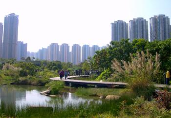 香港濕地公園位于新界天水圍的北部,是亞洲首個擁有同類型設(shè)施的公園,建有占地1萬平方米的室內(nèi)展覽館"濕地互動世界",以及超過60公頃的濕地保護(hù)區(qū)。香港濕地公園是一個世界級的生態(tài)旅游景點,設(shè)置了野生動物模型展覽、仿真濕地場景和娛樂教育設(shè)施。公園里有近190種雀鳥、40種蜻蜓和超過200種蝴蝶及飛蛾。徜徉其中游人不僅能夠欣賞自然美景,還能通過香港規(guī)劃設(shè)計師匠心獨具的設(shè)計,欣賞各種水的形態(tài)、體驗水孕育生命的特質(zhì)。