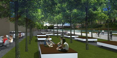 設計是以現存的大背景為依據,并沒有尋求那些并不必要的改變。例如,工程是完整協調的,沒有改變原本的地形。關鍵的目標之一是使這里布局更加合理,以此保證提供多用途空間。又長又寬的步行道的作用是連接城市各部分,導向相鄰的河岸,在道路上人們可以享受空間,總是顯得那么生氣蓬勃。