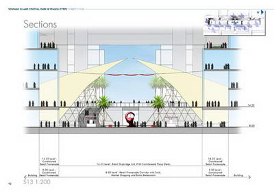 垂直組分設計是重要的,是設計概念傳達的比喻。各種不同部分,例如地點分析,設計靈感和先前原型,以垂直橫斷的視角展示出來,從90米高的觀察點轉到公園的地面。整體的規劃構思從高層著手,每一部分最終都降至公園地面,通過這種方法,改變從宏觀到微觀的敘述方式,或是相互作用和體驗感覺。