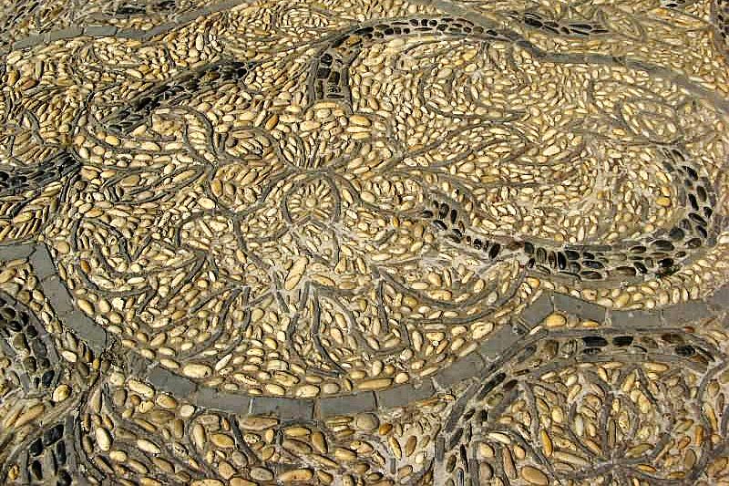 中國風(fēng)景園林網(wǎng)訊 當(dāng)你漫步在中國園林的時候,經(jīng)常能發(fā)現(xiàn)自己走在一條鋪著彩色鵝卵石組成的圖案的小路上——這是中國園林景觀的一個重要元素。這些圖案不是由建筑師設(shè)計的,而是由藝術(shù)家們設(shè)計完成。