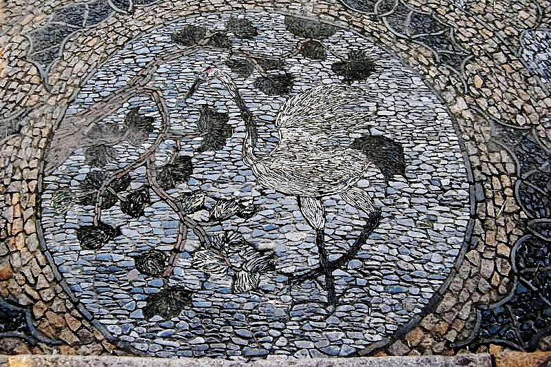 鋪設(shè)鵝卵石圖案是一個需要技術(shù)和經(jīng)驗的復(fù)雜工作。鋪設(shè)好石灰砂漿的墊層之后,再按照設(shè)計的圖案,鋪設(shè)具有不同天然顏色的卵石——綠色的卵石用作植物的葉子,黑色的卵石用作動物的眼睛等等。卵石組成的圖案通常包括傳統(tǒng)中國繪畫中常見的各種主題:風(fēng)景,人物,花草,鳥類,歷史或民間傳說等等。