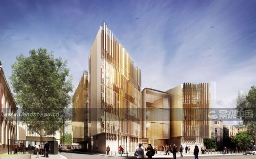 為了保證城市中大量傳統的遺產性建筑(大學目前正使用著其中很大一部分),FJMT的設計在具有高透明性玻璃及高通風性的空腔內整合了自動成型的木制百葉窗系統構成的綜合立面體系。