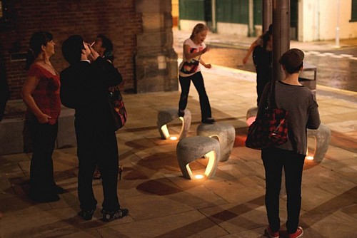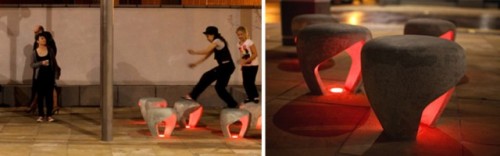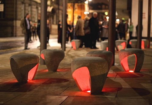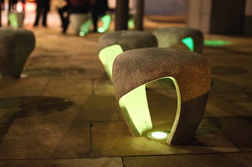 由英國(guó)設(shè)計(jì)師Charlie Davidson的公共座椅,椅子使用彩色混凝土、石英、大理石或云母做成。 擺在公園的地面射燈上,即可以減少地面燈對(duì)眼球的傷害,也可以做為一個(gè)椅子讓游客休息,是一舉兩得的好工具。