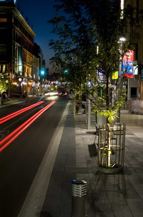 中國風景園林網(wǎng)訊:IBI集團自2007年開始對加拿大安大略省基奇納市城市中心區(qū)國王街街景進行規(guī)劃。歷史城市發(fā)展越來越講求復興建設,改變一度被人忽視的街道,使之變得活躍而充滿生機,使市民重獲自豪感,喚醒人們的創(chuàng)造力。最重要的是將人的關注和商業(yè)活動重新引向市中心。復興建設的焦點是六街區(qū)中心,從國王街延伸1.1千米,從東南福雷德克里/本頓街,到西北佛朗西斯街。這里是重要的市民中心,聚集了各種學術和文化委員會,同時也是重要的公共空間。這里有市政大廳、廣場、演講角廣場、博物館(原滑鐵盧兒童博物館)、滑鐵盧大學新制藥學院以及最近又增添的Google新地方辦公樓。